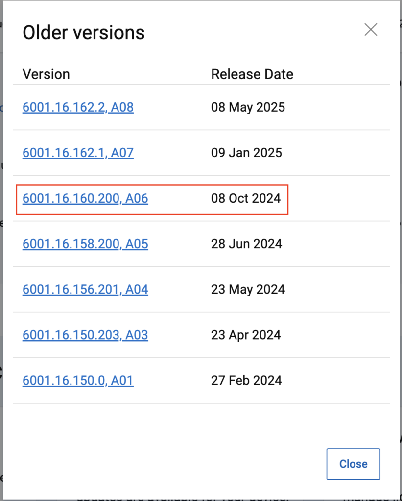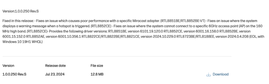 The drivers on the HP laptop were from November 2023 so with newer drivers being available (July 2024), I asked them to update to see if that helped. The Dell driver was fairly recent as you can see above so there wasn’t a driver at the time that I could recommend updating to. As another note, right around this time (December 2025), 6001.16.162 was made available in the Microsoft Update Catalog, but hadn’t yet made it to the OEMs’ driver pages and this would be significant later on…